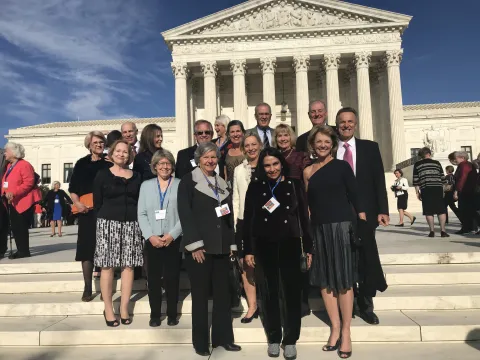 The 2018 ARCS Foundation All Member Conference (AMC), SCIENTIFIC INNOVATION FOR THE NEXT GENERATION, was held in Washington DC April 25-28. Eighteen members of the Phoenix Chapter attended. The keynote speaker was Dr. Deborah Wince-Smith, President and CEO of The Council on Competitiveness, a coalition of CEO’s, university presidents, labor leaders and national laboratory directors, committed to driving U.S. productivity and prosperity. Following the keynote address we were treated to an excellent panel discussion by distinguished academic leaders on how biomedical science is moving forward and what it means to our society. On the second day of the conference we commemorated the 60th Anniversary of ARCS Foundation with a panel of former National Board Presidents who gave an overview of the founding of ARCS Foundation and how we have grown and changed over the past 6 decades. Phoenix Chapter member and past National Board President, Nancy Spetzler (2014/2015) was a member of the panel. Following the past presidents panel, a luncheon was held honoring the 2018 Chapter ARCS Lights including our own Penny Papadopoulos. The social highlight of the AMC was dinner at the United States Supreme Court. Two buses of members and guests were given a police escort to the Court through rush hour traffic! Once seated in the Chamber, we heard a very interesting talk by Justice Anthony Kennedy about his years on the bench. Justice Kennedy’s wife, Mary, is a longtime member of the Metropolitan Washington Chapter and he is an ardent ARCS Foundation supporter. We then had dinner in the rotunda which featured menu selections from a cook book compiled of the Justices’ favorite recipes. The “icing on the cake” was being given souvenir copies of the book at the end of the evening.